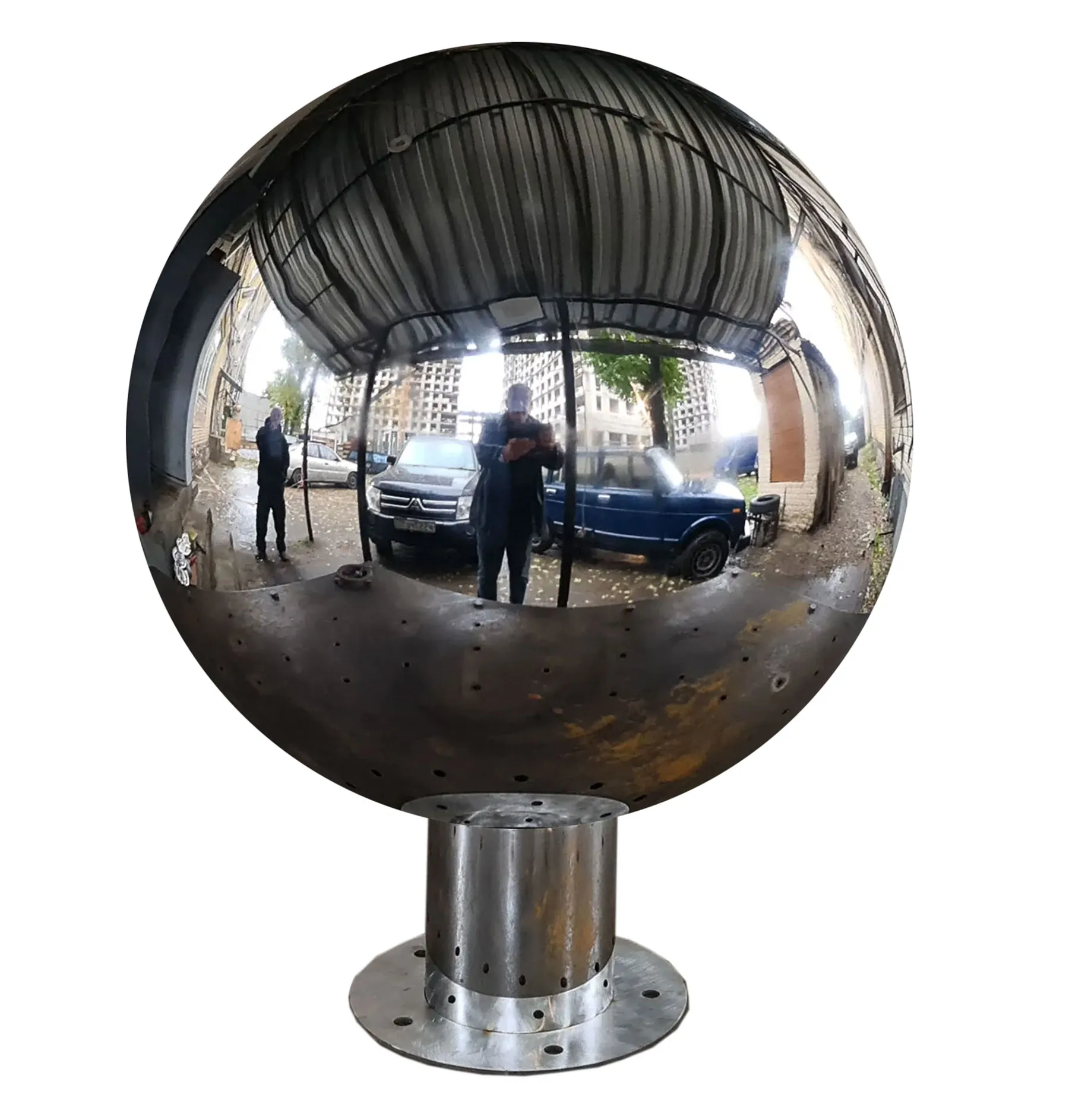 Полые зеркальные шары из нержавеющей стали используются как наружное украшение во многих проектах связанных с ландшафтным дизайном. Сферы с отделкой до зеркала создают точку притяжения и приковывают внимание зрителя.